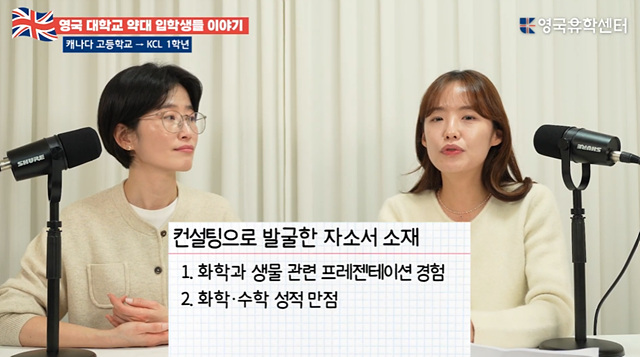 한국 고등학교 이과 출신으로 화학·생물 성적 상위권이었고, 대도시 약대를 목표로 UCL, KCL, 맨체스터 파운데이션에 지원했어요.