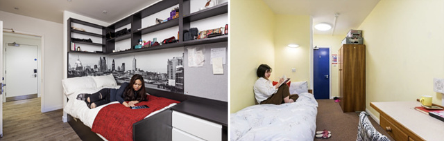 반면에 북부 소도시에 위치한 선더랜드대학교는 기숙사비가 정말 저렴한 편인데요, 주당 기숙사비가 가장 저렴한 곳은 88파운드부터, 145파운드까지 있었어요. 1개월로 보면 66만원-110만원정도에요. 사진으로 보셔도 시설이 깔끔하죠?