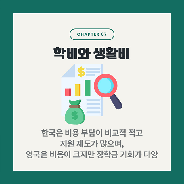 한국 대학은 제도적으로 유연하고 다양한 경험을 할 수 있다는 점이 장점이고, 영국 대학은 학업 기간이 짧고 전공에 집중할 수 있다는 점이 매력적이에요. 결국 어떤 선택이 더 맞을지는 학생 개인의 성향과 목표, 재정 상황에 달려 있습니다.