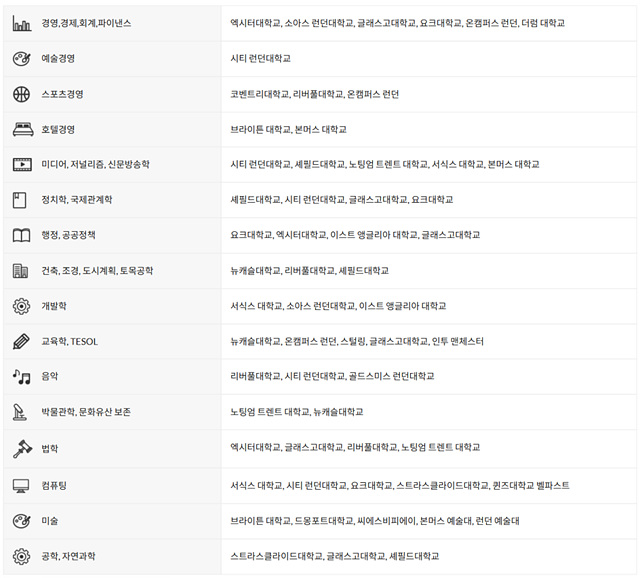 - IELTS 5.0~6.0 수준 (학교마다 다름, 일부는 UKVI 필요)