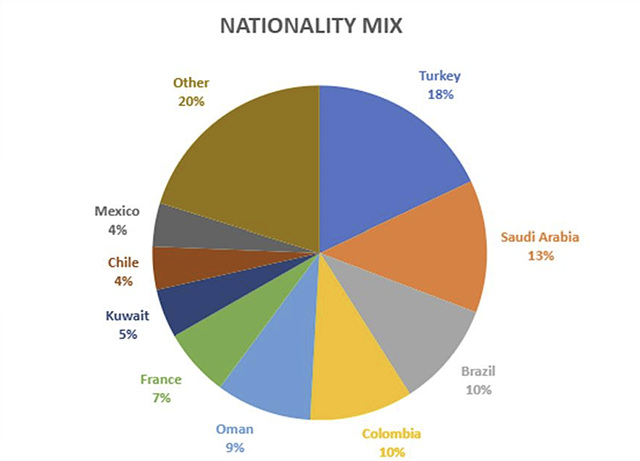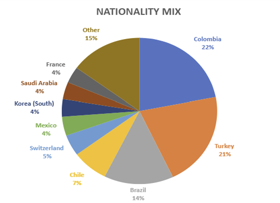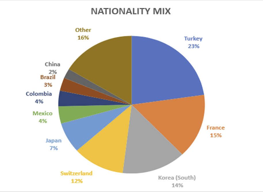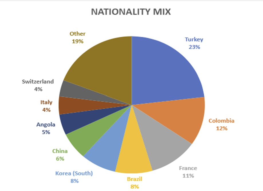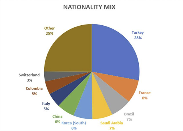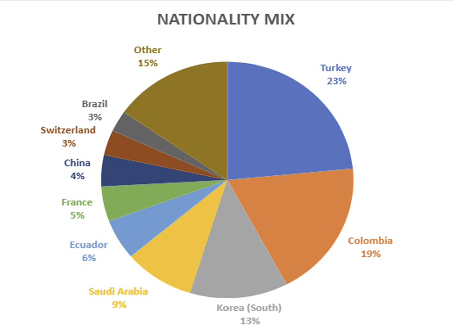 한국이 아닌 해외에서 영어를 배우는 이유가 바로 영어환경에 많이 노출되고 다양한 국적의 친구를 만나는 것인만큼 어학연수를 계획하시는 분들께서 중요하게 생각하시는 부분 중 하나가 바로 국적비 입니다.