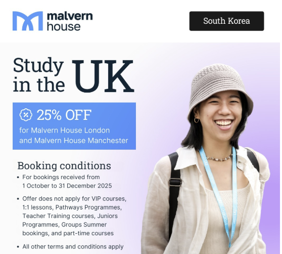 말번하우스(Malvern House) 학비 25% 할인 프로모션