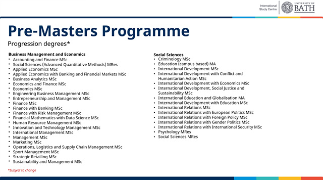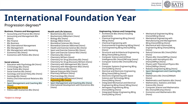 기존에는 바스 컬리지 또는 치체스터 컬리지를 통해 파운데이션 과정을 운영했고, 최근에는 데이빗 게임 컬리지 그룹의 바스 아카데미를 통한 입학 루트도 있었으나 아무래도 대학교 캠퍼스 내에서 운영하는게 아니고 입학조건도 높아서 추천드리기가 좀 애매했었어요.