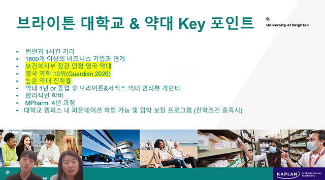 이번 웨비나를 통해 브라이튼 대학교 약대가 왜 꾸준히 인기 있는지,