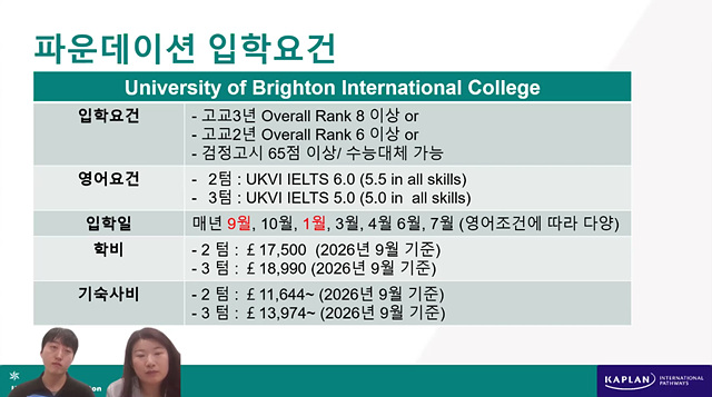University of Brighton International College (UBIC) 기준입니다.
