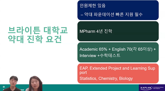 최근 카플란 한국지사에서 브라이튼대학교 약대 재학생과 함께 웨비나를 진행했는데요, 그 내용을 정리해보았어요.