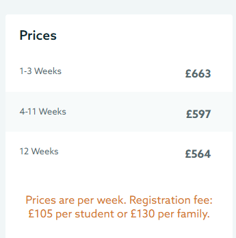 - 3주 이하 등록시 주당 학비는 507파운드에요.