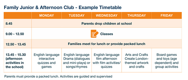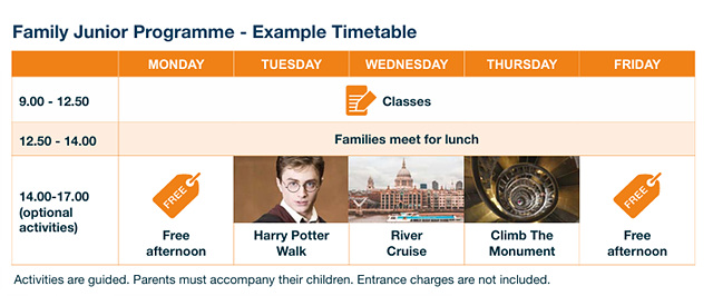 오전 집중 영어 수업 후 오후에는 가족이 자유롭게 런던을 여행할 수 있는 일정입니다.