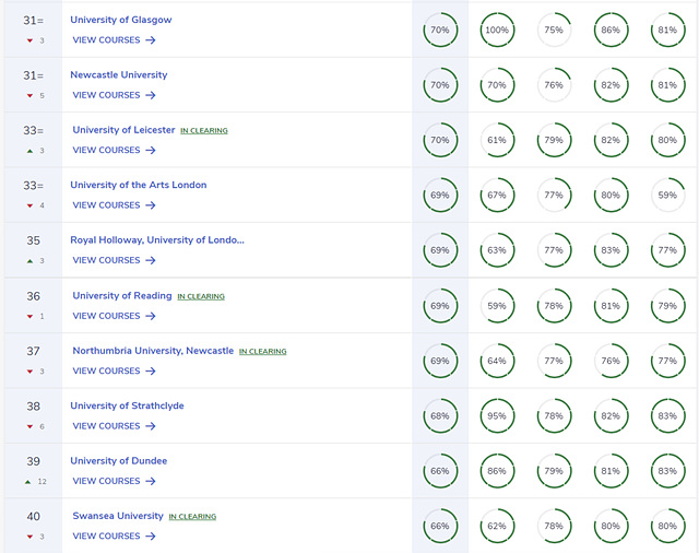 뉴캐슬대학교, 레스터대학교, 레딩대학교 등도 작년과 비슷한 순위를 유지했습니다!