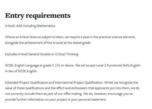 에이레벨 기준으로 수학과목을 포함해 AAA가 필요하며,