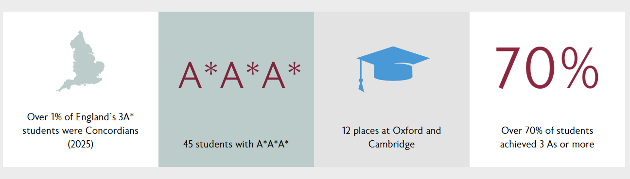 수학, 컴퓨터 과학 등 STEM 핵심 과목 응시생의 70% 이상이 A-A*를 기록했습니다. 졸업생 대다수가 G5 및 러셀 그룹 대학에 합격하며 명성을 이어가고 있습니다.