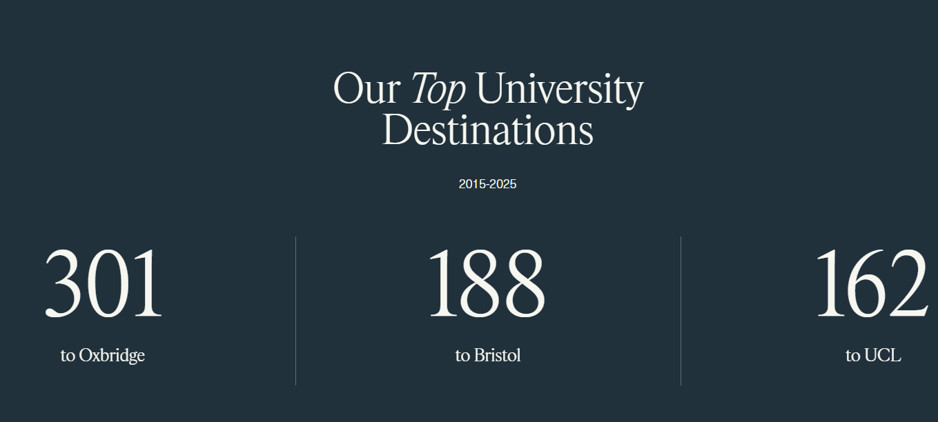 A* 비율 55%라는 높은 수치를 기록했으며, 올해 특히 의대 지원자 전원이 1지망 대학 오퍼를 수락하는 쾌거를 거두었습니다. 임페리얼, 브리스틀 등 이공계 명문대 진학에서 매년 독보적인 성과를 보여주는 학교입니다.
