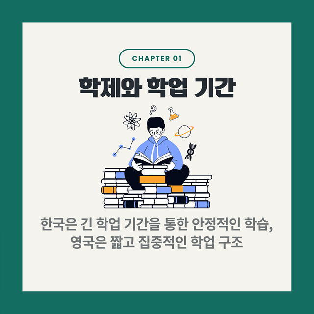 영국 대학은 9월에 시작하는 경우가 많고, 학사는 3년, 석사는 단 1년 만에 마칠 수 있어요. 그래서 빠르게 학위를 취득하고 바로 진로로 이어갈 수 있다는 장점이 있죠. 다만 그만큼 학업이 압축적으로 진행돼 과제와 학습량이 많다는 건 감안해야 해요.