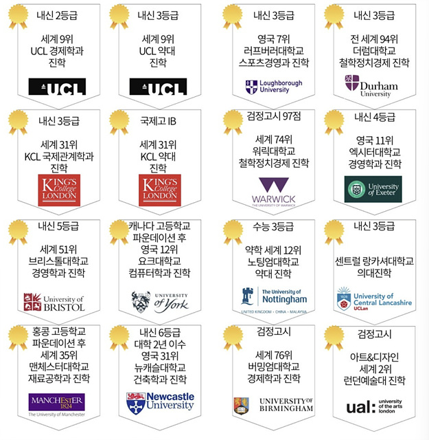 내신 3-5등급은 노팅엄, 엑시터, 브리스톨, 버밍엄, 요크 등 상위권 패스웨이과정 입학 가능
