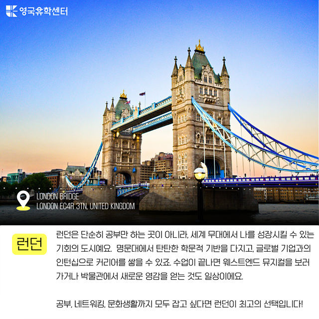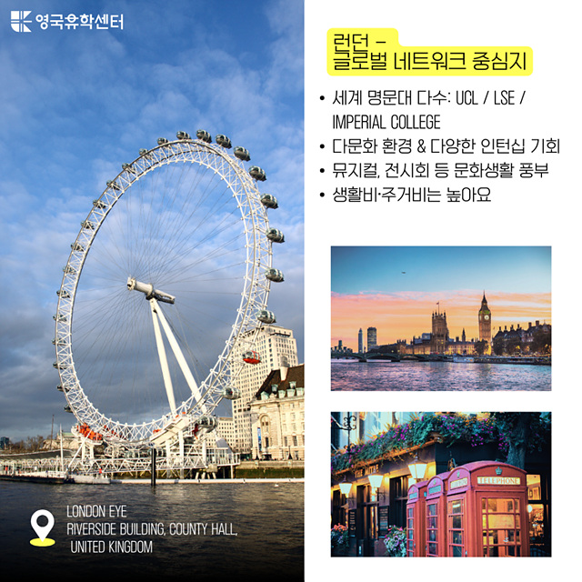 런던은 국제적 무대에서 활약하고 싶은 학생들에게 정말 매력적인 도시랍니다.