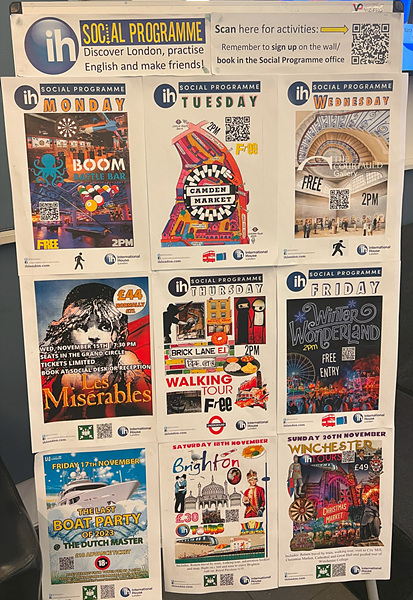 랭기지익스체인지는 매주 있는 프로그램은 아닙니다만! IH런던에서도 매일매일 색다른 소셜 프로그램들을 제공하고 있어요!