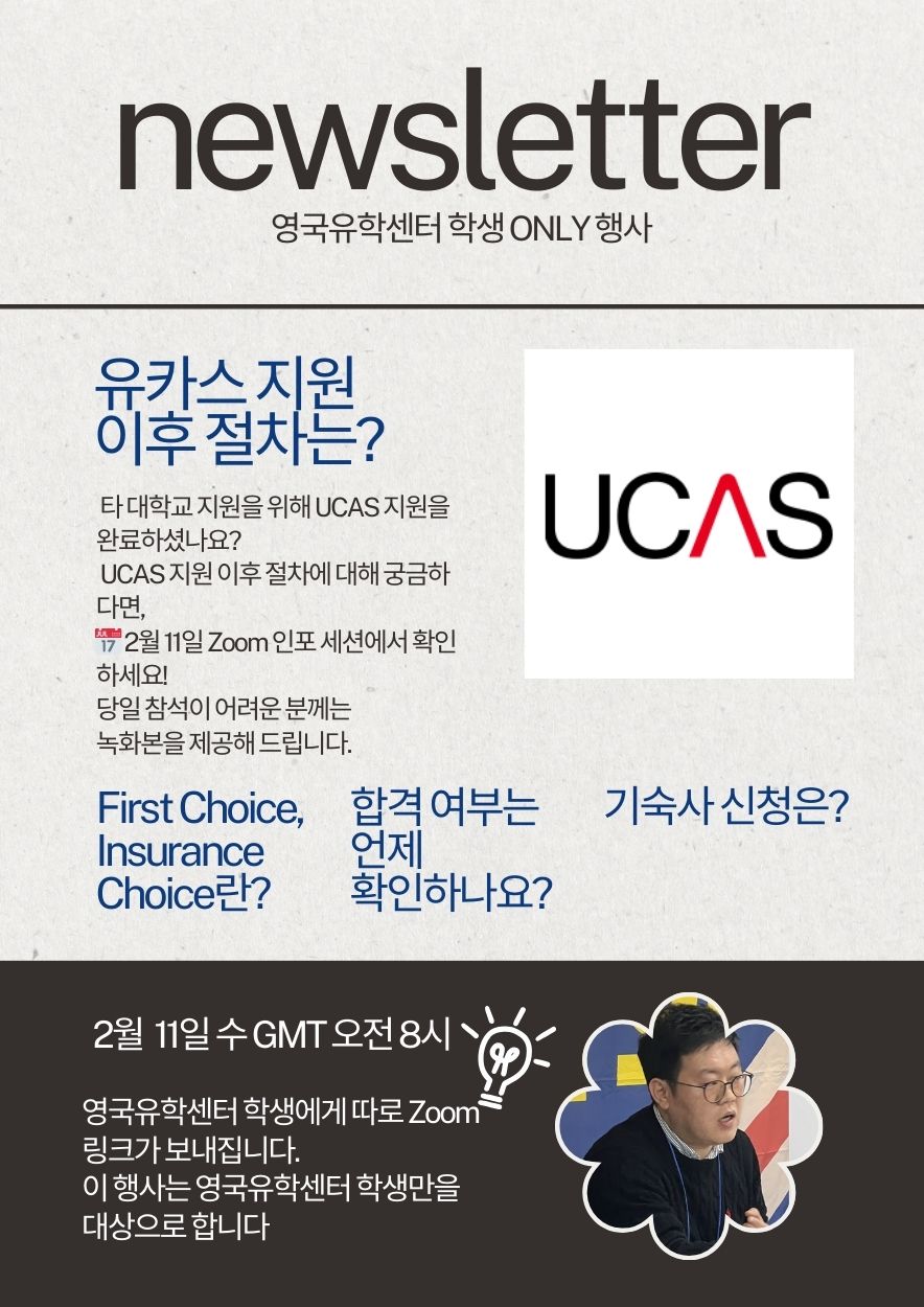 이번 세션은 UCAS 지원 이후 반드시 알아야 할 필수 프로세스를 실무 전문가가 직접 짚어드립니다.