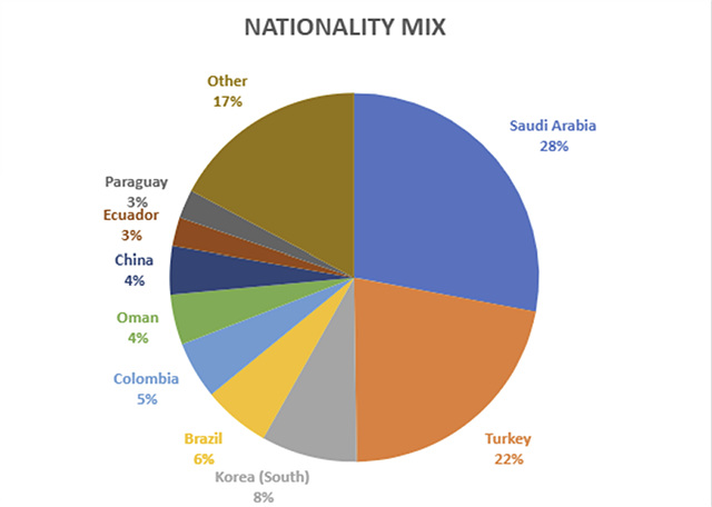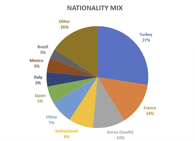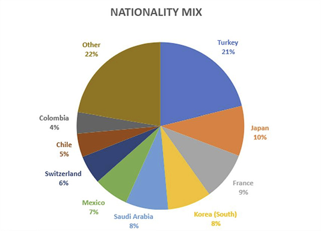 한국이 아닌 해외에서 영어를 배우는 이유가 바로 영어환경에 많이 노출되고 다양한 국적의 친구를 만나는 것인만큼 어학연수를 계획하시는 분들께서 중요하게 생각하시는 부분 중 하나가 바로 국적비 입니다.