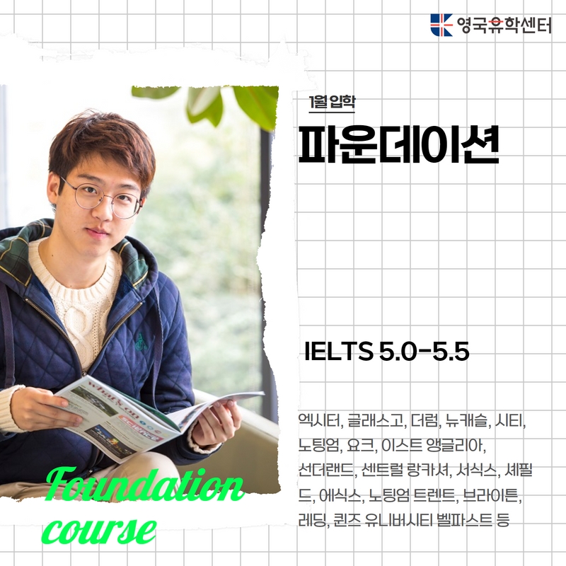 각 파운데이션 과정별 고등학교 내신 조건이 다르니, 영국유학센터로 연락주세요!