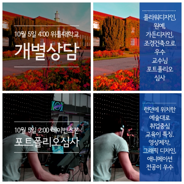 9-10월 UCL, 리즈 등 영국대학교 개별상담, 포트폴리오 심사일정