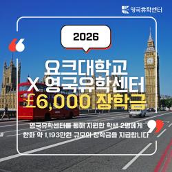 요크대학교(University of York)에서 영국유학센터를 통해 지원한 학생 2명에게 각 £6,000 장학금 지급이 확정되었습니다!