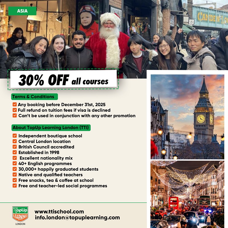 영국 어학연수 고민 중이라면? TTi (Top up learning) 런던 최대 30% 할인 소식