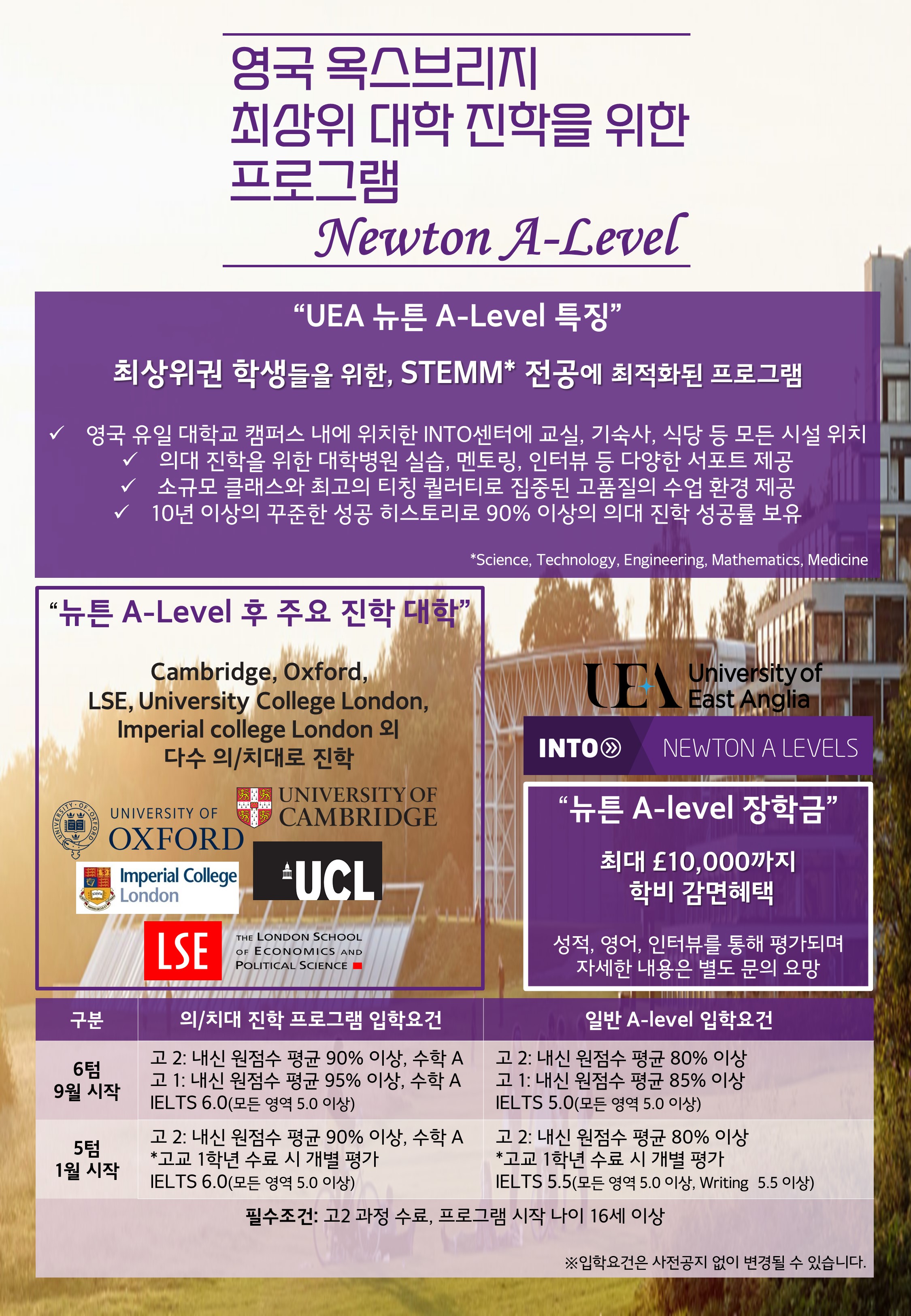 영국 최상위 대학 진학을 위한 프로그램, UEA 뉴튼 A-Level!