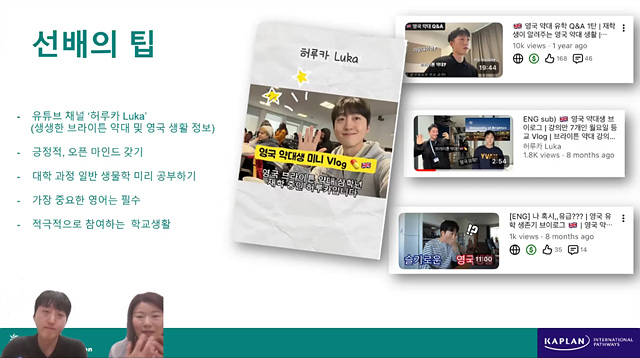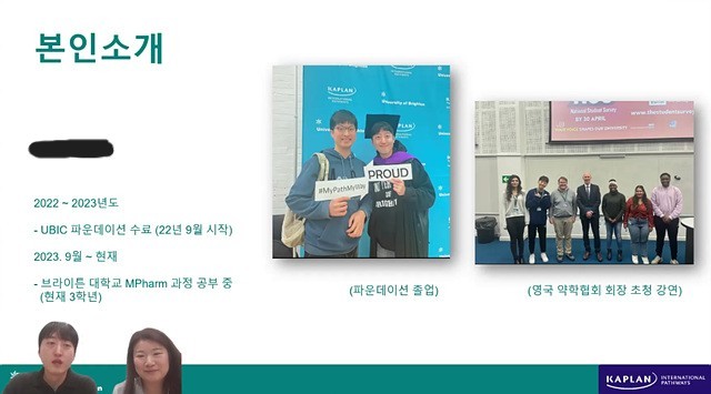 이번 웨비나에는 브라이튼 약대 3학년에 재학 중인 한국 학생이 함께해 주셨어요!