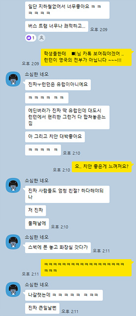 에딘버러의 치안과 사람들의 친절함은 학생이 직접 겪은 에피소드로 더 실감나게 전해졌습니다.